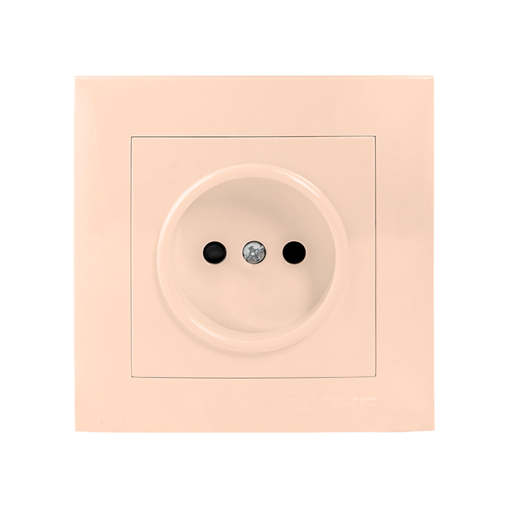 Розетка Валенсия, со шторками, без заземления, одинарная, винтовые клеммы, цвет - кремовый