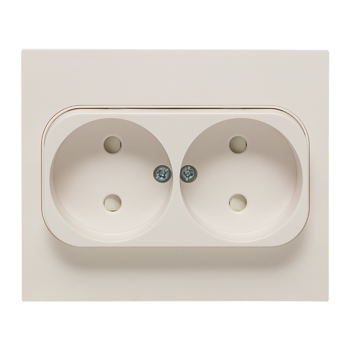 Розетка 10А Стокгольм, со шторками, без заземления, двойная, безвинтовые клеммы, цвет - белый