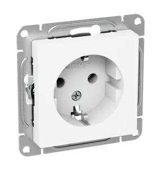 Розетка Epica, со шторками, с заземлением, одинарная, винтовые клеммы, цвет - белый