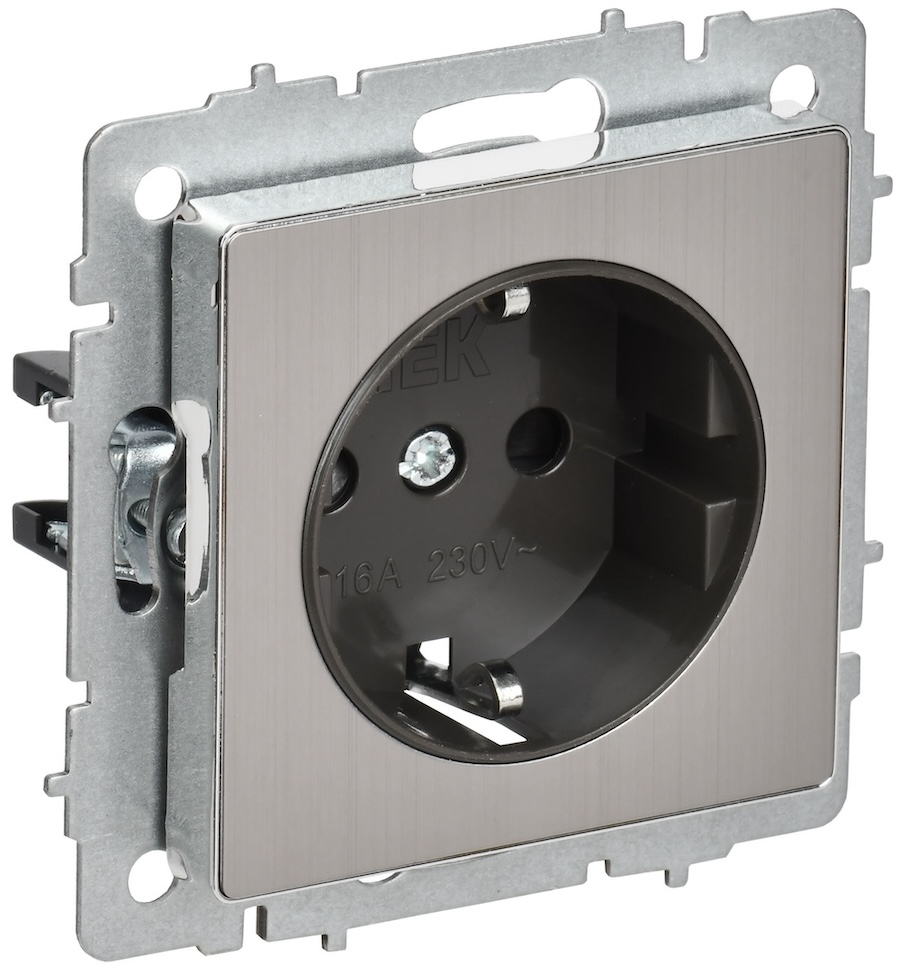 Розетка с рамкой BRITE, со шторками, с заземлением, одинарная, винтовые клеммы, цвет - никель