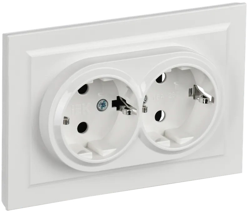 BRITE, без шторок, с заземлением, двойная, винтовые клеммы, цвет - белый