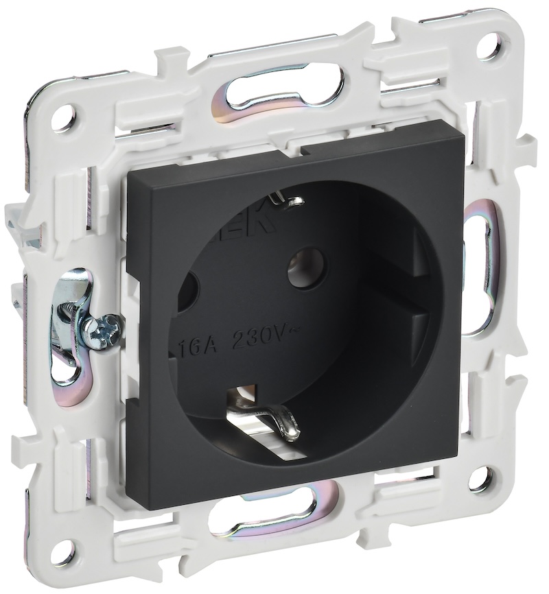Skandy, со шторками, с заземлением, одинарная, винтовые клеммы, цвет - графит