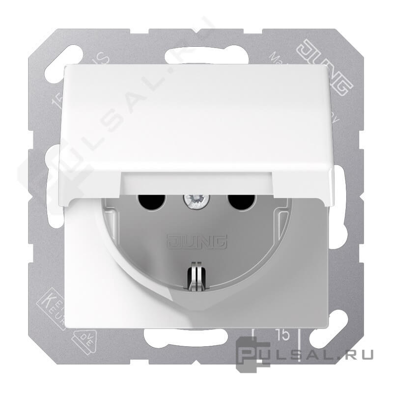 Розетка AS 500 Ударопрочная, со шторками, с крышкой, с заземлением, одинарная, безвинтовые клеммы, цвет - белый