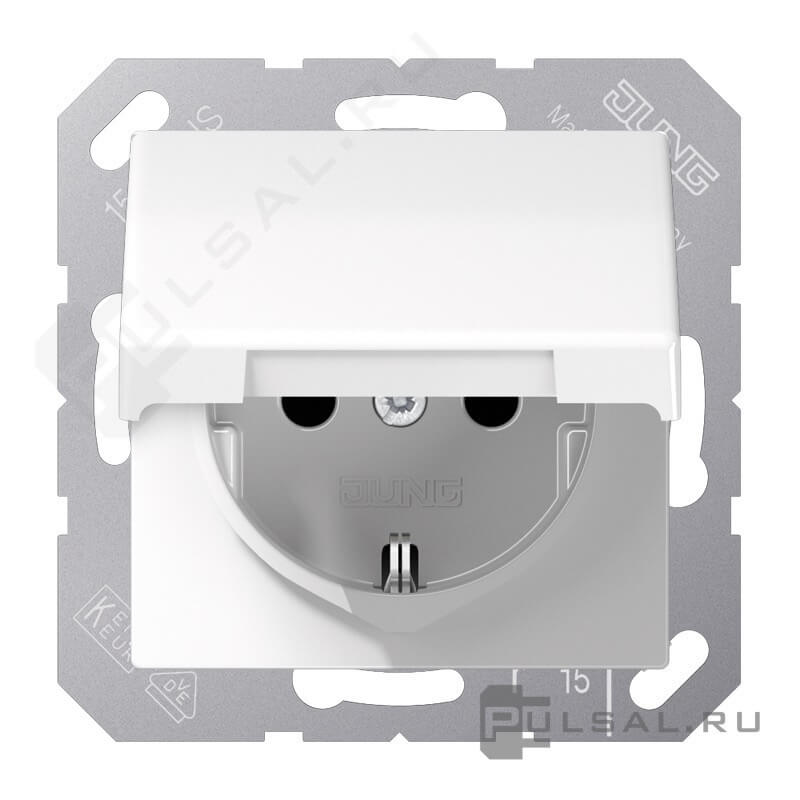 Розетка AS 500 Ударопрочная, без шторок, с крышкой, с заземлением, одинарная, безвинтовые клеммы, цвет - белый