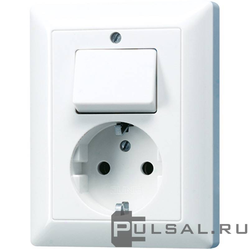 Блок розетки и переключателя AS 500, без шторок, с заземлением, одинарная, винтовые клеммы, цвет - белый