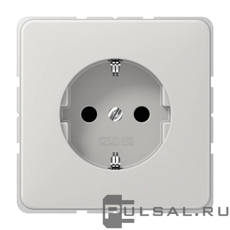 Розетка CD 500, CD ударопрочная, CD plus, без шторок, с крышкой, с заземлением, одинарная, безвинтовые клеммы, цвет - светло-серый