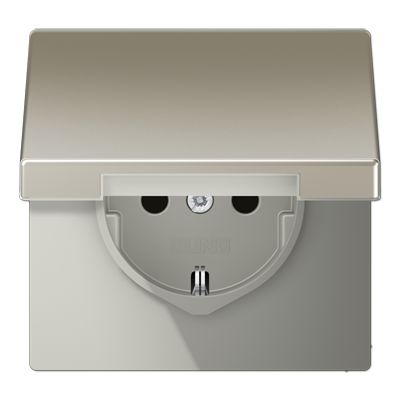 Розетка LS 990, LS 1912, LS plus, LS ZERO, LS-design, FD-design, без шторок, с крышкой, с заземлением, одинарная, безвинтовые клеммы, цвет - нержавеющая сталь