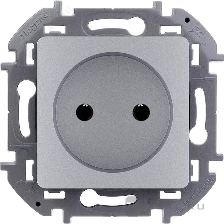 Розетка Inspiria, без шторок, без заземления, одинарная, винтовые клеммы, цвет - алюминий