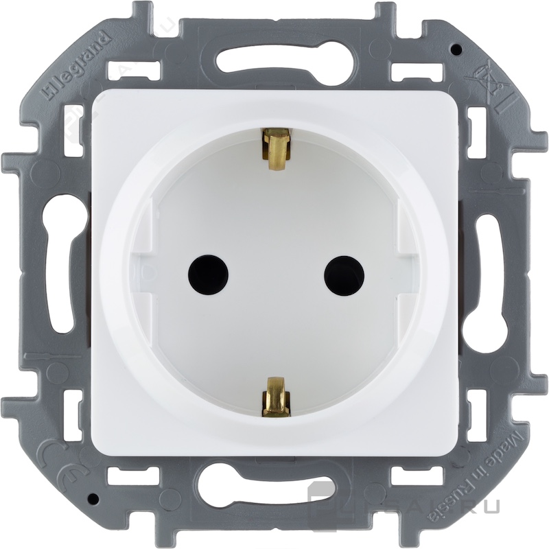 Розетка Inspiria, со шторками, с заземлением, одинарная, винтовые клеммы, цвет - белый