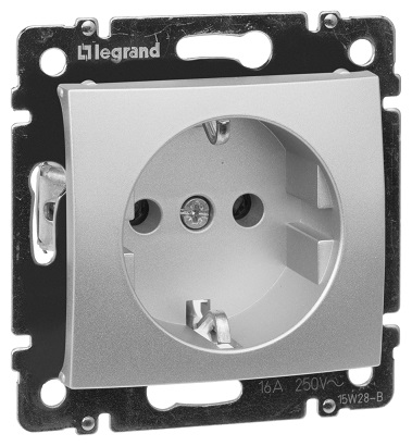 Розетка Valena, без шторок, с заземлением, одинарная, винтовые клеммы, цвет - алюминий
