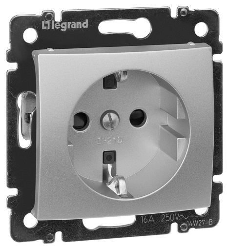 Розетка Valena, со шторками, с заземлением, одинарная, винтовые клеммы, цвет - алюминий