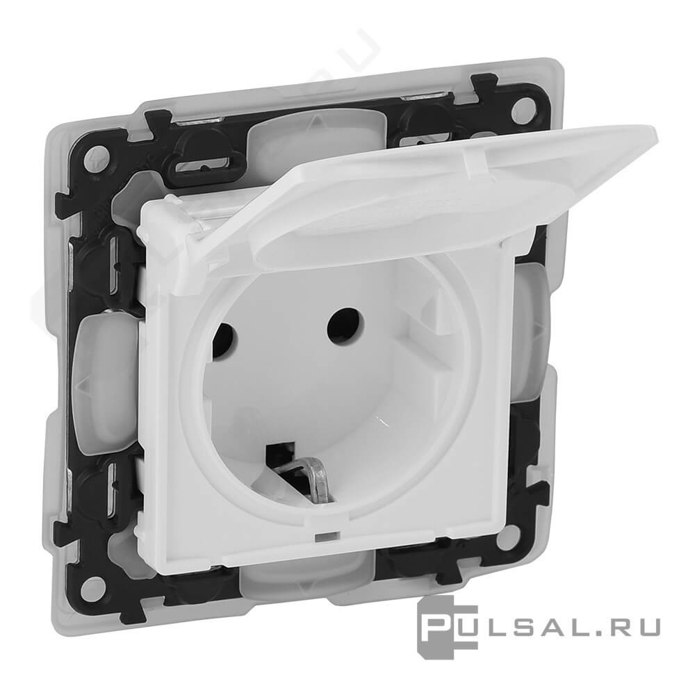 Розетка Valena Life, со шторками, с крышкой, с заземлением, одинарная, безвинтовые клеммы, цвет - белый