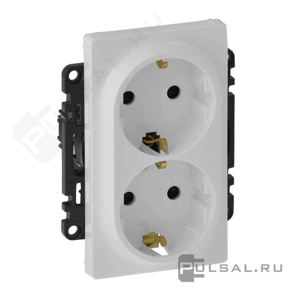Двойная электрическая розетка с лицевой панелью 2х2К+З в одинарную монтажную коробку