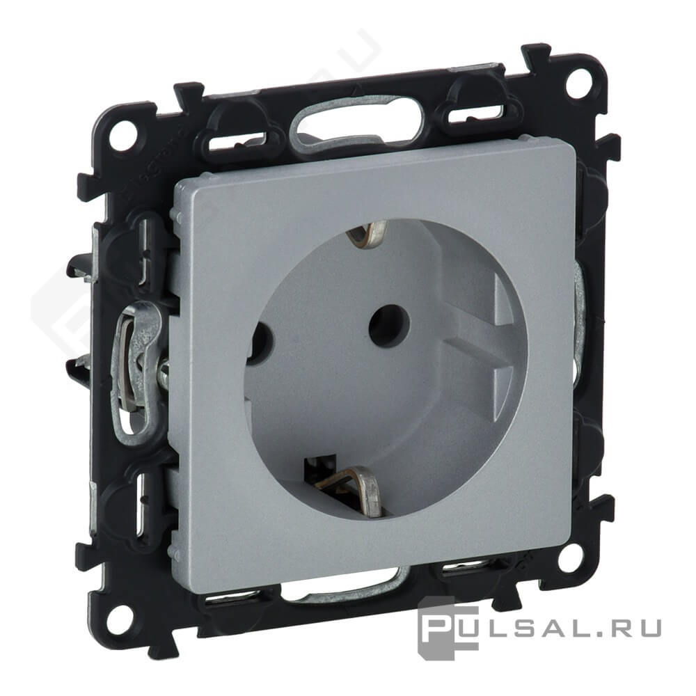 Розетка Valena Life, со шторками, с заземлением, одинарная, винтовые клеммы, цвет - алюминий