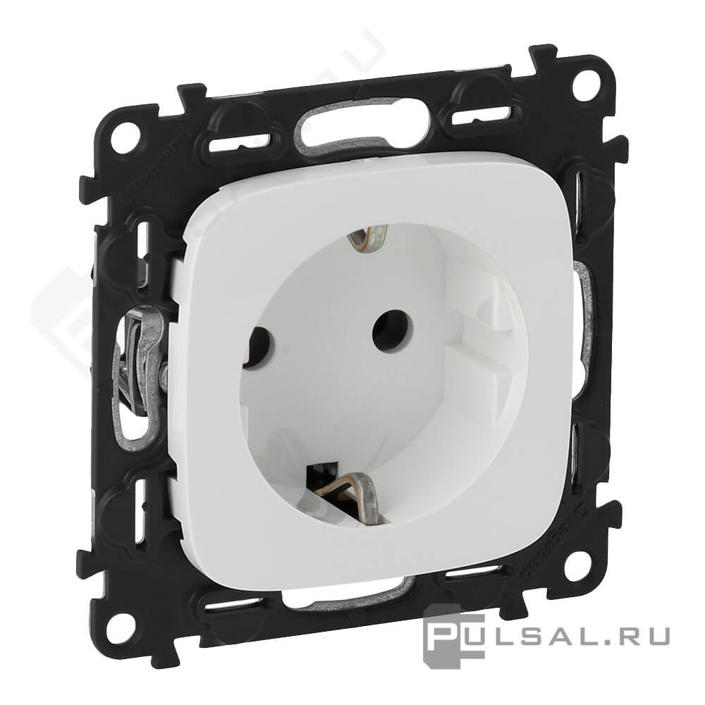 Розетка Valena Allure, со шторками, с заземлением, одинарная, винтовые клеммы, цвет - белый
