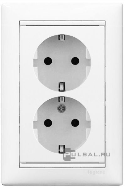 Розетка Valena, со шторками, с заземлением, двойная, винтовые клеммы, цвет - белый