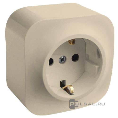 Розетка Quteo, со шторками, с заземлением, одинарная, винтовые клеммы, цвет - слоновая кость