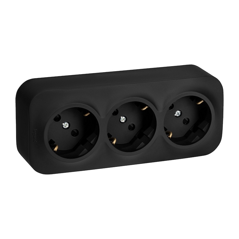 Розетка 45° Quteo, со шторками, с заземлением, тройная, винтовые клеммы, цвет - матовый черный