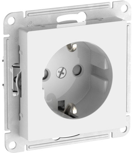 Розетка (безвинтовые клеммы) Atlas Design Antique, AtlasDesign Air, Atlas Design, со шторками, с заземлением, одинарная, безвинтовые клеммы, цвет - белый
