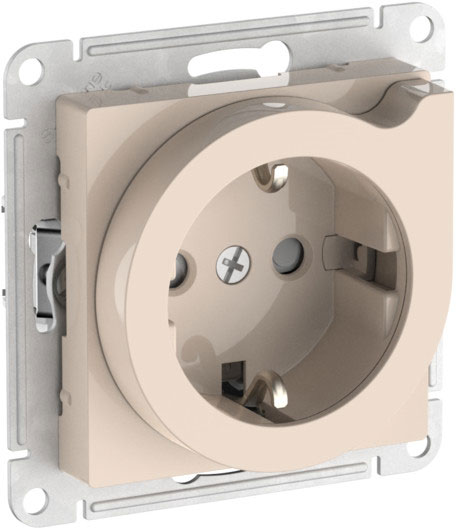 Розетка с выталкиванием вилки Atlas Design Antique, AtlasDesign Air, Atlas Design, со шторками, с заземлением, одинарная, винтовые клеммы, цвет - бежевый