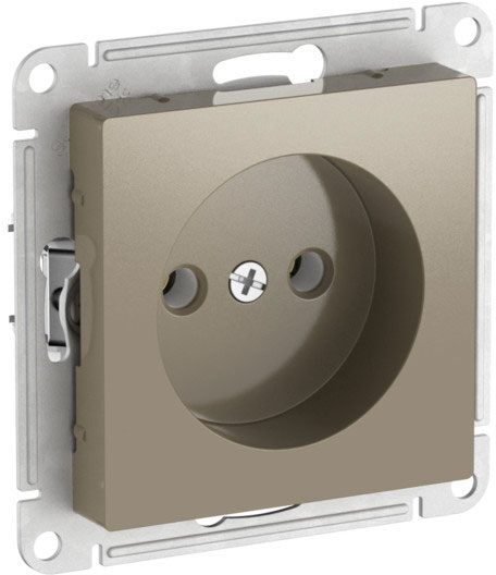 Розетка (безвинтовые клеммы) Atlas Design Antique, AtlasDesign Air, Atlas Design, без шторок, без заземления, одинарная, безвинтовые клеммы, цвет - шампань