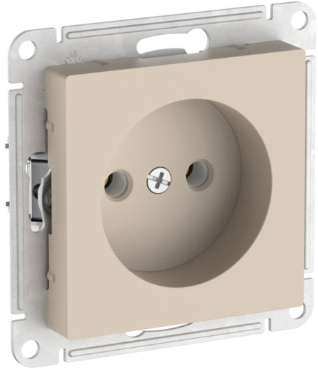 Розетка (безвинтовые клеммы) Atlas Design Antique, AtlasDesign Air, Atlas Design, без шторок, без заземления, одинарная, безвинтовые клеммы, цвет - песочный