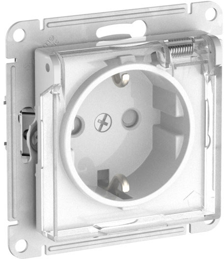 Розетка с выталкиванием вилки Atlas Design Antique, AtlasDesign Air, Atlas Design, со шторками, с заземлением, одинарная, винтовые клеммы, цвет - белый