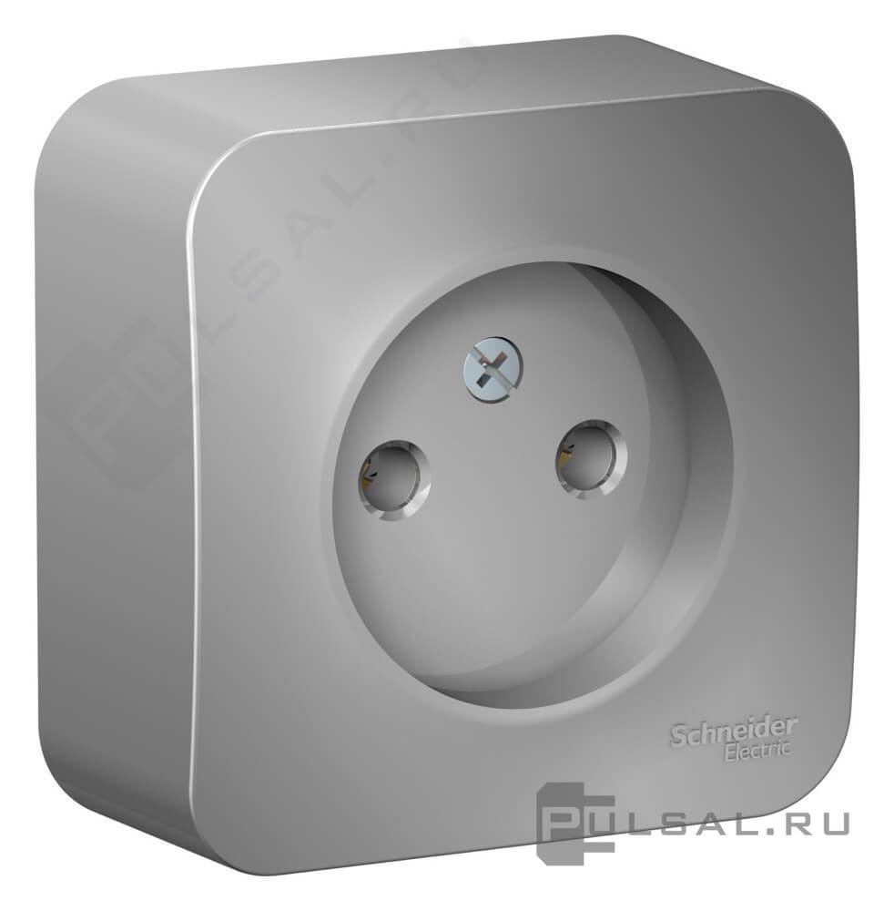 Розетка с рамкой Blanca, без шторок, без заземления, одинарная, цвет - алюминий