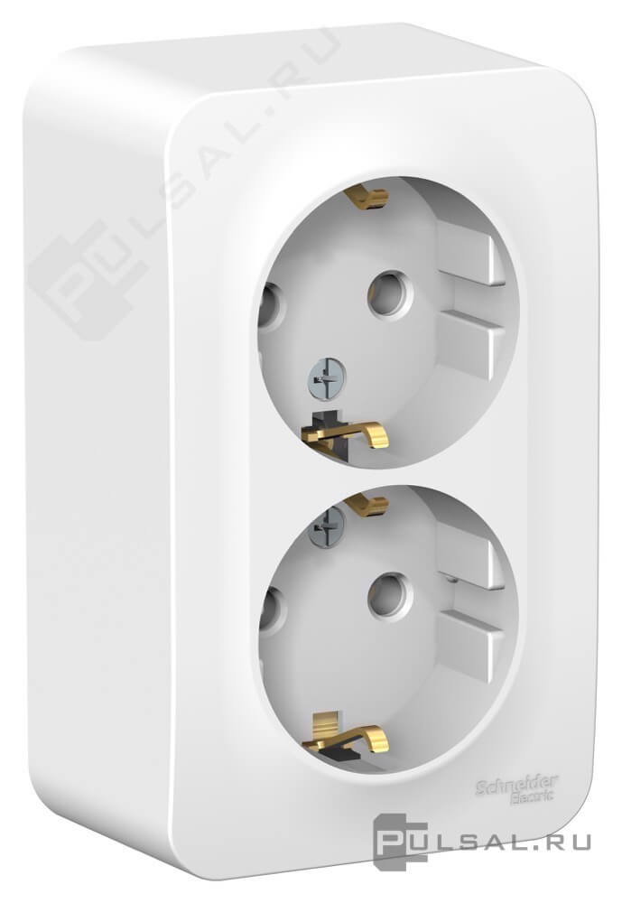 Розетка с изолирующей пластиной Blanca, со шторками, с заземлением, двойная, цвет - белый