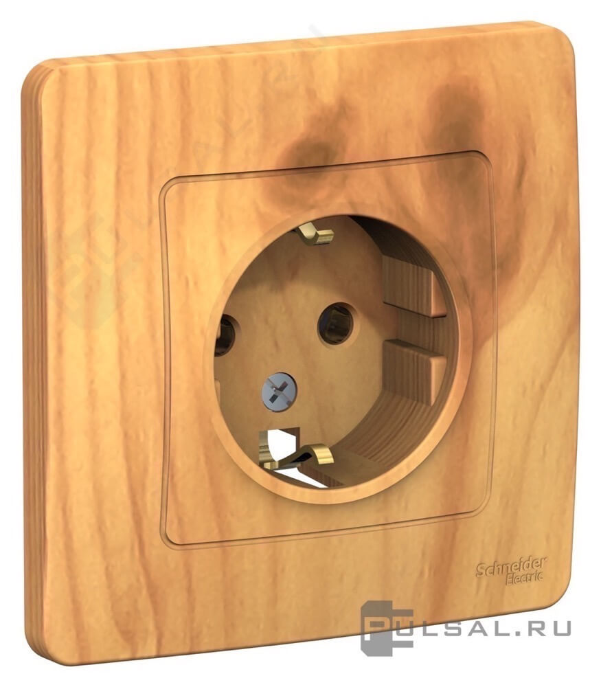 Розетка с рамкой Blanca, без шторок, с заземлением, одинарная, цвет - ясень