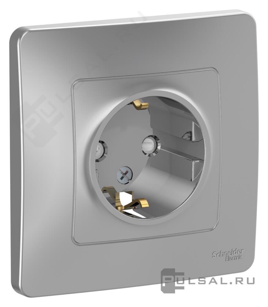 Розетка с рамкой Blanca, со шторками, с заземлением, одинарная, цвет - алюминий