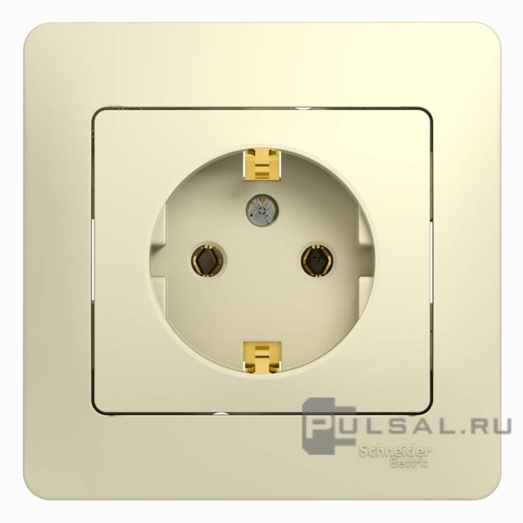 Розетка с рамкой Glossa, без шторок, с заземлением, одинарная, винтовые клеммы, цвет - бежевый