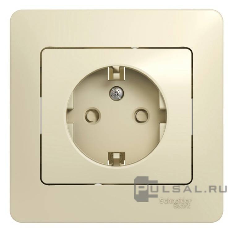 Розетка с рамкой Glossa, со шторками, с заземлением, одинарная, винтовые клеммы, цвет - бежевый
