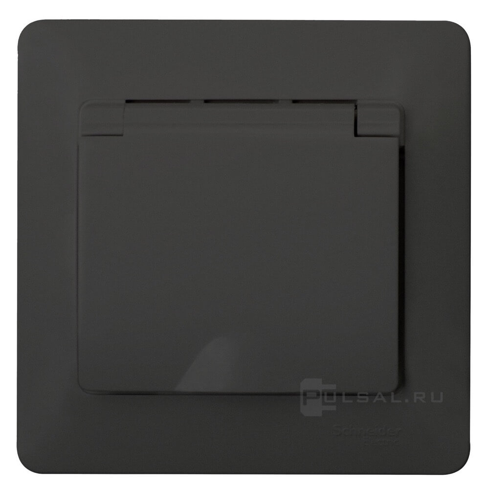 Розетка с рамкой Glossa, со шторками, с крышкой, с заземлением, одинарная, винтовые клеммы, цвет - антрацит