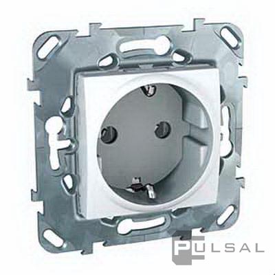 Розетка Unica Базовая, Unica Хамелеон, Unica Quadro, без шторок, с заземлением, одинарная, винтовые клеммы, цвет - белый