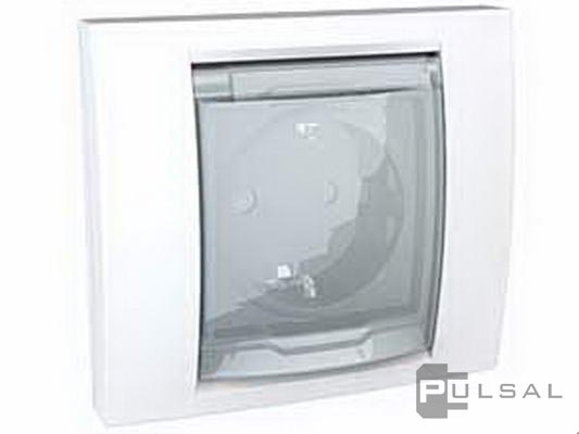 Розетка моноблок Unica Базовая, Unica Хамелеон, со шторками, с крышкой, с заземлением, одинарная, винтовые клеммы, цвет - белый