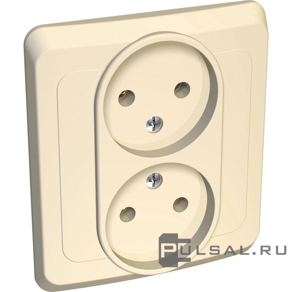 Розетка Этюд, со шторками, без заземления, двойная, винтовые клеммы, цвет - кремовый