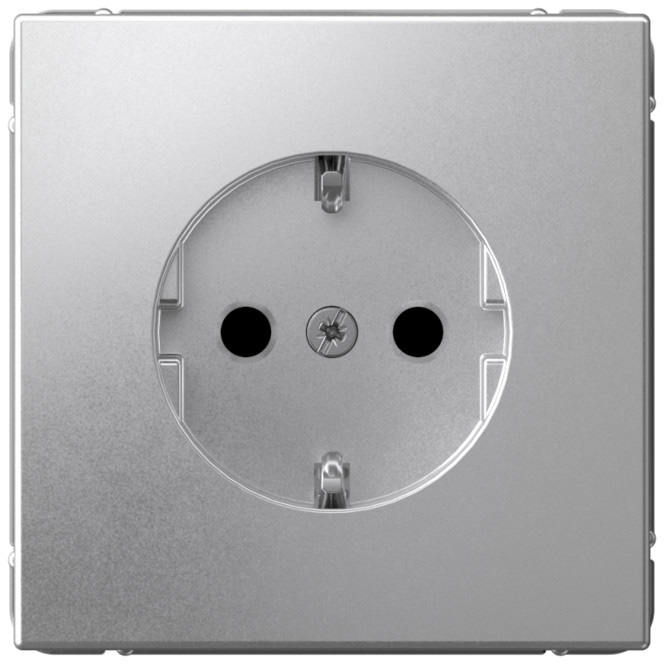 Розетка (безвинтовые клеммы) ArtGallery, ArtGallery Pure, со шторками, с заземлением, одинарная, безвинтовые клеммы, цвет - алюминий