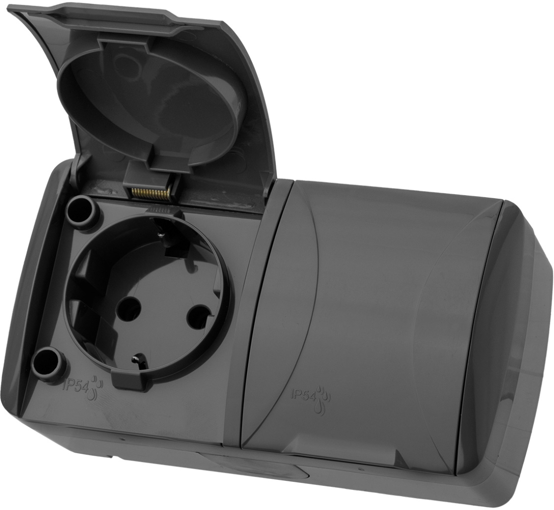 Селигер, с крышкой, с заземлением, двойная, винтовые клеммы, цвет - серый