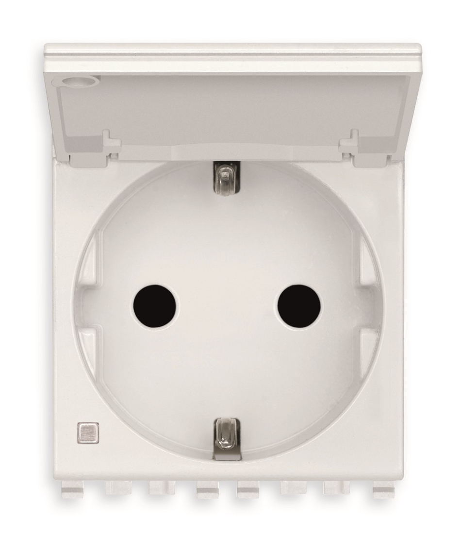 Eikon EVO, Eikon EXE, со шторками, с заземлением, одинарная, винтовые клеммы, цвет - белый