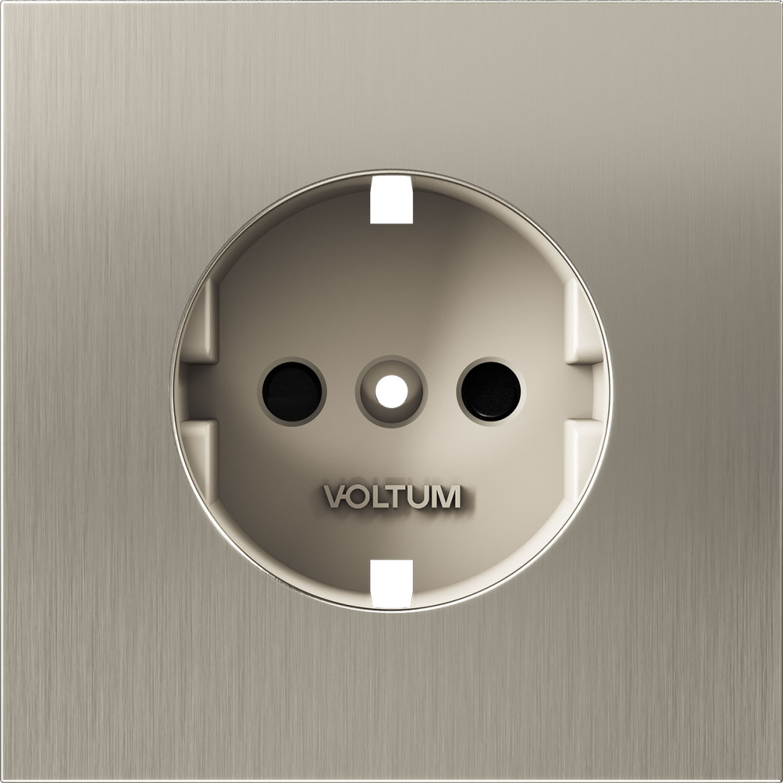 Накладка электрической розетки S70 Metal, без шторок, с заземлением, одинарная, безвинтовые клеммы, цвет - никель металл