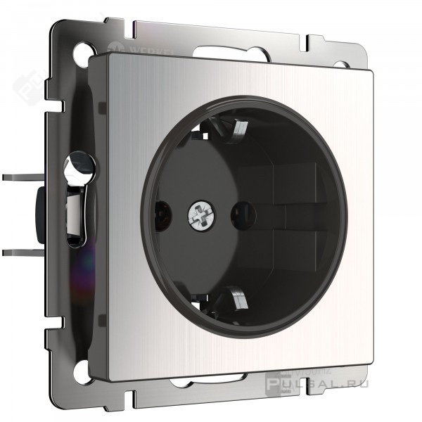 Розетка Alumax, Split, Slab, Senso, Baguette, Acrylic, Platinum, Elite, Snabb, Stream, Flock, Stark, Fiore, Favorit, Diamant, Aluminium, Antik, Metallic, со шторками, с заземлением, одинарная, винтовые клеммы, цвет - глянцевый никель