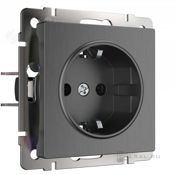 Розетка Alumax, Split, Slab, Senso, Baguette, Acrylic, Platinum, Elite, Snabb, Stream, Flock, Stark, Fiore, Favorit, Diamant, Aluminium, Antik, Metallic, без шторок, с заземлением, одинарная, винтовые клеммы, цвет - графит рифленый