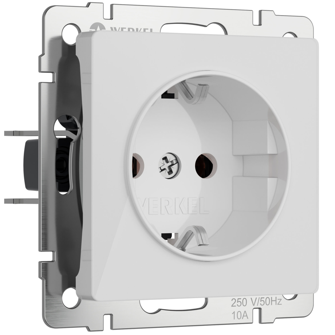 Розетка Alumax, Split, Slab, Senso, Baguette, Acrylic, Platinum, Elite, Snabb, Stream, Flock, Stark, Fiore, Favorit, Diamant, Aluminium, Antik, Metallic, без шторок, с заземлением, одинарная, винтовые клеммы, цвет - белый акрил