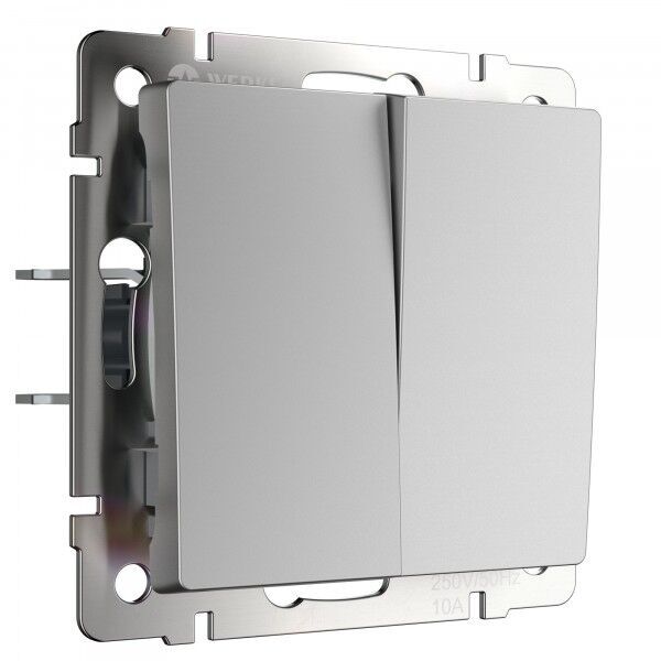 Выключатель Alumax, Split, Slab, Senso, Baguette, Acrylic, Platinum, Elite, Snabb, Stream, Flock, Stark, Fiore, Favorit, Diamant, Aluminium, Antik, Metallic, одноклавишный, без подсветки, цвет - серебряный