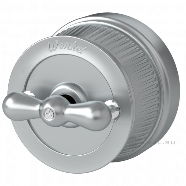 Розетка Retro, без шторок, с заземлением, одинарная, винтовые клеммы, цвет - матовый хром