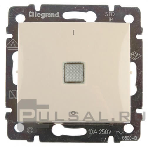 Выключатель двухполюсный Valena, одноклавишный, с индикацией, цвет - слоновая кость