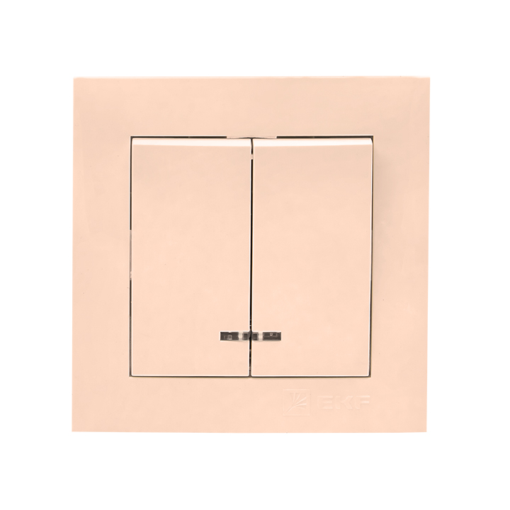 Переключатель Валенсия, двухклавишный, без подсветки, цвет - кремовый