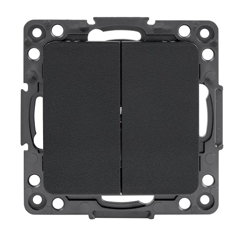 Выключатель Стокгольм, двухклавишный, без подсветки, цвет - черный