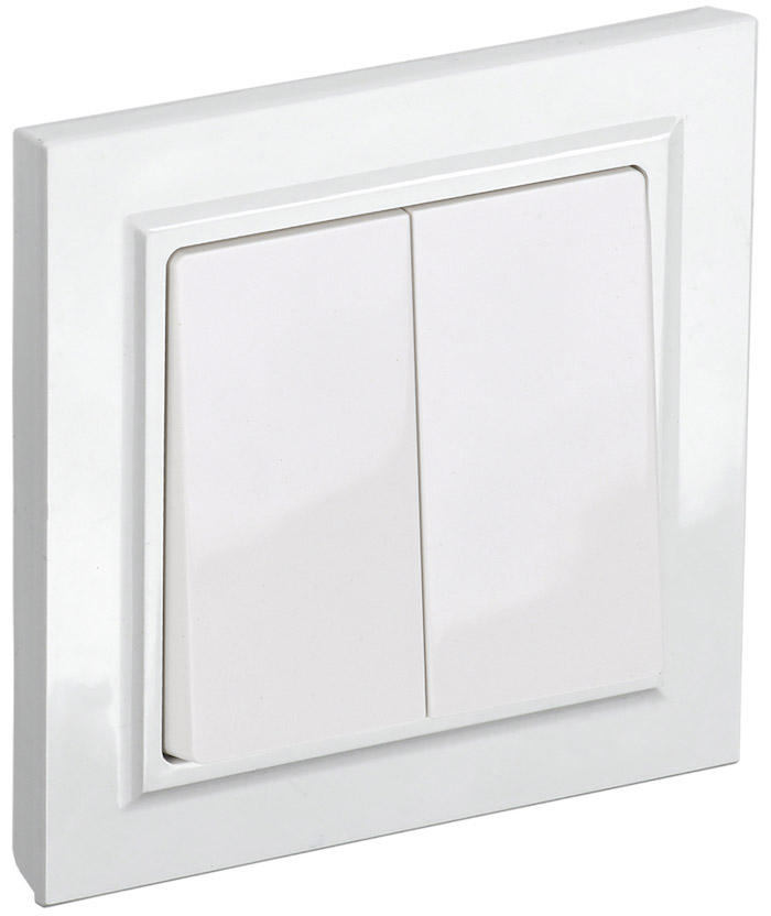 Переключатель BRITE, двухклавишный, без подсветки, цвет - белый